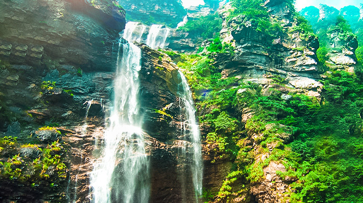 三叠泉也叫三级泉、水帘泉,位于庐山风景名胜区东南九叠谷,被誉为“庐山第一奇观”。它其实并非泉而是瀑布,水流从五老峰北悬崖口落下,冲击三级盘石而形成“三叠”,总落差155米,十分壮美,有“不到三叠泉,不算庐山客”之说。三叠泉四季景色各异,一般在春末夏初时水量较大,可以看到飞流直下的瀑布,是观赏三叠泉的适合时机。而仲夏和严冬时雨水较少,看到的则是秀气柔美的水帘。如果你一心冲着三叠泉的壮观瀑布而来,就一定不能选错时间,否则难免失望。站在三叠泉附近的高处,可以俯视它,一叠的水从20多米高一倾而下,二叠弯曲,然后直入潭中。要近距离感受三叠泉的视觉冲击,还需要下到谷底看三叠,是非常辛苦的过程,建议带点吃的。景区内有缆车可以搭乘,但只能送你到一叠入口。在入口处购买门票后,还要步行1600级的下山台阶才能到达末端。这一路十分险要,千万不要为了看风景而失了脚下的路,尤其雨季时更要小心。站在三叠泉谷底的盘石仰望,可以看瀑布飞洒而下,气势磅礴,声响轰鸣,才觉得此前的辛劳并没有白费。你可以在此拍照留念,记得要注意防水。休息过后还得原路返回,上山比下山更费体力;也可以不走回头路,直接下山出庐山景区,这样的话就建议把这里安排在游览庐山的最后一天。三叠泉还有一个有趣之处,历史上它曾长期未被发现,就连隐居在它上游的李白和在它下游讲学的朱熹都不知道这一胜境近在咫尺,直到后来三叠泉才被人发现。