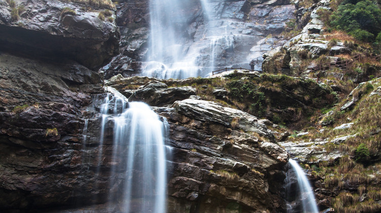 三叠泉也叫三级泉、水帘泉,位于庐山风景名胜区东南九叠谷,被誉为“庐山第一奇观”。它其实并非泉而是瀑布,水流从五老峰北悬崖口落下,冲击三级盘石而形成“三叠”,总落差155米,十分壮美,有“不到三叠泉,不算庐山客”之说。三叠泉四季景色各异,一般在春末夏初时水量较大,可以看到飞流直下的瀑布,是观赏三叠泉的适合时机。而仲夏和严冬时雨水较少,看到的则是秀气柔美的水帘。如果你一心冲着三叠泉的壮观瀑布而来,就一定不能选错时间,否则难免失望。站在三叠泉附近的高处,可以俯视它,一叠的水从20多米高一倾而下,二叠弯曲,然后直入潭中。要近距离感受三叠泉的视觉冲击,还需要下到谷底看三叠,是非常辛苦的过程,建议带点吃的。景区内有缆车可以搭乘,但只能送你到一叠入口。在入口处购买门票后,还要步行1600级的下山台阶才能到达末端。这一路十分险要,千万不要为了看风景而失了脚下的路,尤其雨季时更要小心。站在三叠泉谷底的盘石仰望,可以看瀑布飞洒而下,气势磅礴,声响轰鸣,才觉得此前的辛劳并没有白费。你可以在此拍照留念,记得要注意防水。休息过后还得原路返回,上山比下山更费体力;也可以不走回头路,直接下山出庐山景区,这样的话就建议把三叠泉安排在游览庐山的最后一天。三叠泉还有一个有趣之处,历史上它曾长期未被发现,就连隐居在它上游的李白和在它下游讲学的朱熹都不知道这一胜境近在咫尺,直到后来三叠泉才被人发现。