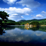 芦林湖位于江西省九江市庐山区海拔1040米的东谷芦林盆地,故又称东湖。芦林湖四周群山环抱,苍松翠柏,湖水如镜,似发光的碧玉镶嵌在林荫秀谷之中,在缥缈的云烟衬托下,犹如天上神湖。此处原是芦草丛生、野兽出没的芦林谷地,介于玉屏、星洲两峰之间。