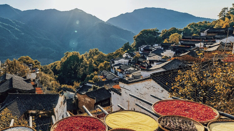 挂在山崖上的篁岭古村,地无三尺平,数百年来,村民早已习惯用平和的心态与崎岖的地形“交流”,绘就出了一处“晒秋人家”风情画。