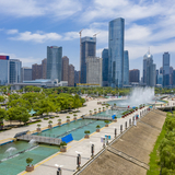 南昌秋水广场-音乐喷泉位于南昌市红谷滩新区赣江之滨的中心地带,与滕王阁隔江相望。它是亚洲较大的音乐喷泉群,共配置了中心主喷、环形高喷、圆形摇摆喷泉和数控跑泉等20余个水景,是南昌市一靓丽景观。