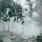从黄龙寺沿石阶曲径上行约20分钟,便到芦林大桥。一路密林蔽日,树干高耸挺拔,夏日人行其间颇感凉爽。