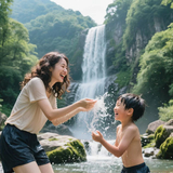 站在三叠泉瀑布前的观景石台上举目望去,但见全长近百米的白练由北崖口悬注于大盘石之上,白练悬挂于空中,三叠分明,正如古人所云:“上级如飘云拖练,中级如碎石摧冰,下级如玉龙走潭。”而在水流飞溅中,远隔十几米仍觉湿意扑面。