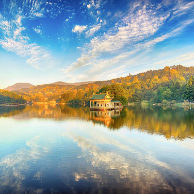 1954年此地筑坝蓄水,于是高峡出平湖,青山绿水,山色倒影,相映成趣,为庐山添了一处胜景。
