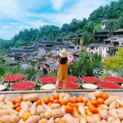 立秋一到,篁岭古村就成了一个天地晒场。来晒秋人家赏红枫,欣赏屋顶晒秋,枫林尽染,体验民风民俗,手摇风车、套南瓜等,感受晒秋人家的乡愁韵味。
