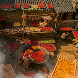 挂在山崖上的篁岭古村,地无三尺平,数百年来,村民早已习惯用平和的心态与崎岖的地形“交流”,绘就出了一处“晒秋人家”风情画。