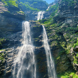 三叠泉也叫三级泉、水帘泉,位于庐山风景名胜区东南九叠谷,被誉为“庐山第一奇观”。它其实并非泉而是瀑布,水流从五老峰北悬崖口落下,冲击三级盘石而形成“三叠”,总落差155米,十分壮美,有“不到三叠泉,不算庐山客”之说。三叠泉四季景色各异,一般在春末夏初时水量较大,可以看到飞流直下的瀑布,是观赏三叠泉的适合时机。而仲夏和严冬时雨水较少,看到的则是秀气柔美的水帘。如果你一心冲着三叠泉的壮观瀑布而来,就一定不能选错时间,否则难免失望。站在三叠泉附近的高处,可以俯视它,一叠的水从20多米高一倾而下,二叠弯曲,然后直入潭中。要近距离感受三叠泉的视觉冲击,还需要下到谷底看三叠,是非常辛苦的过程,建议带点吃的。景区内有缆车可以搭乘,但只能送你到一叠入口。在入口处购买门票后,还要步行1600级的下山台阶才能到达末端。这一路十分险要,千万不要为了看风景而失了脚下的路,尤其雨季时更要小心。站在三叠泉谷底的盘石仰望,可以看瀑布飞洒而下,气势磅礴,声响轰鸣,才觉得此前的辛劳并没有白费。你可以在此拍照留念,记得要注意防水。休息过后还得原路返回,上山比下山更费体力;也可以不走回头路,直接下山出庐山景区,这样的话就建议把这里安排在游览庐山的最后一天。三叠泉还有一个有趣之处,历史上它曾长期未被发现,就连隐居在它上游的李白和在它下游讲学的朱熹都不知道这一胜境近在咫尺,直到后来三叠泉才被人发现。