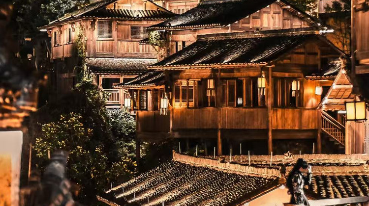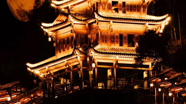 【夜游望仙谷】,是从悬崖顶上朝鹤楼的灯光闪烁开始。”“望仙谷的灯光秀不同别处,自带玉宇琼楼的仙气。仰望白鹤崖,从朝鹤楼上喷薄而出的光柱,冲破雨雾,散发光芒。夜幕下的望仙谷灯火通明,从高处俯瞰,整个山谷流光溢彩,灯光亮起的一瞬间,一整个惊艳住,悬崖边的房子和夜晚灯火通明的夜景集市,仿佛一下带您进了动画里的世界。这里的民俗文化丰富多彩,桥灯、庙会、傩舞、板龙灯,稻米习俗 ....... 人文风情引人注目。