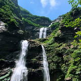 三叠泉也叫三级泉、水帘泉,位于庐山风景名胜区东南九叠谷,被誉为“庐山第一奇观”。它其实并非泉而是瀑布,水流从五老峰北悬崖口落下,冲击三级盘石而形成“三叠”,总落差155米,十分壮美,有“不到三叠泉,不算庐山客”之说。三叠泉四季景色各异,一般在春末夏初时水量较大,可以看到飞流直下的瀑布,是观赏三叠泉的适合时机。而仲夏和严冬时雨水较少,看到的则是秀气柔美的水帘。如果你一心冲着三叠泉的壮观瀑布而来,就一定不能选错时间,否则难免失望。站在三叠泉附近的高处,可以俯视它,一叠的水从20多米高一倾而下,二叠弯曲,然后直入潭中。要近距离感受三叠泉的视觉冲击,还需要下到谷底看三叠,是非常辛苦的过程,建议带点吃的。景区内有缆车可以搭乘,但只能送你到一叠入口。在入口处购买门票后,还要步行1600级的下山台阶才能到达末端。这一路十分险要,千万不要为了看风景而失了脚下的路,尤其雨季时更要小心。站在三叠泉谷底的盘石仰望,可以看瀑布飞洒而下,气势磅礴,声响轰鸣,才觉得此前的辛劳并没有白费。你可以在此拍照留念,记得要注意防水。休息过后还得原路返回,上山比下山更费体力;也可以不走回头路,直接下山出庐山景区,这样的话就建议把这里安排在游览庐山的最后一天。三叠泉还有一个有趣之处,历史上它曾长期未被发现,就连隐居在它上游的李白和在它下游讲学的朱熹都不知道这一胜境近在咫尺,直到后来三叠泉才被人发现。
