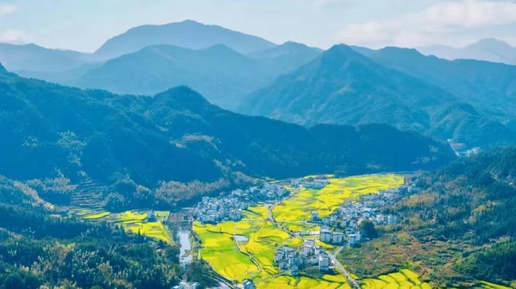 阳春三月,婺源篁岭景区数万亩层层叠叠的梯田上油菜花盛开,粉红的桃花、雪白的梨花点缀其中,是一副优美的水墨油画,在这里,你可以与大自然融为一体,与花海亲密接触。