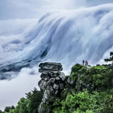 三叠泉也叫三级泉、水帘泉,位于庐山风景名胜区东南九叠谷,被誉为“庐山第一奇观”。它其实并非泉而是瀑布,水流从五老峰北悬崖口落下,冲击三级盘石而形成“三叠”,总落差155米,十分壮美,有“不到三叠泉,不算庐山客”之说。三叠泉四季景色各异,一般在春末夏初时水量较大,可以看到飞流直下的瀑布,是观赏三叠泉的适合时机。而仲夏和严冬时雨水较少,看到的则是秀气柔美的水帘。如果你一心冲着三叠泉的壮观瀑布而来,就一定不能选错时间,否则难免失望。站在三叠泉附近的高处,可以俯视它,一叠的水从20多米高一倾而下,二叠弯曲,然后直入潭中。要近距离感受三叠泉的视觉冲击,还需要下到谷底看三叠,是非常辛苦的过程,建议带点吃的。景区内有缆车可以搭乘,但只能送你到一叠入口。在入口处购买门票后,还要步行1600级的下山台阶才能到达末端。这一路十分险要,千万不要为了看风景而失了脚下的路,尤其雨季时更要小心。站在三叠泉谷底的盘石仰望,可以看瀑布飞洒而下,气势磅礴,声响轰鸣,才觉得此前的辛劳并没有白费。你可以在此拍照留念,记得要注意防水。休息过后还得原路返回,上山比下山更费体力;也可以不走回头路,直接下山出庐山景区,这样的话就建议把这里安排在游览庐山的最后一天。三叠泉还有一个有趣之处,历史上它曾长期未被发现,就连隐居在它上游的李白和在它下游讲学的朱熹都不知道这一胜境近在咫尺,直到后来三叠泉才被人发现。